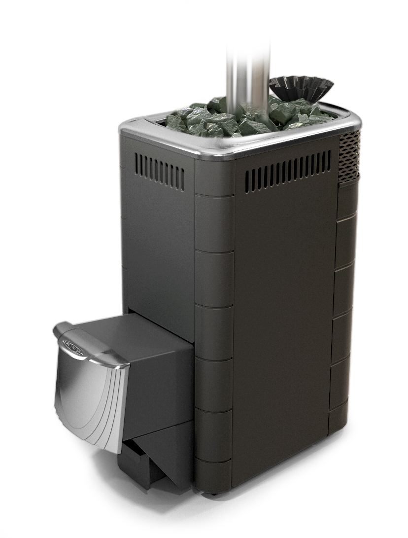 Увеличенная и усиленная двойным сварным швом закрытая первичная каменка обладает достаточной теплоемкостью для частых интенсивных подач воды.