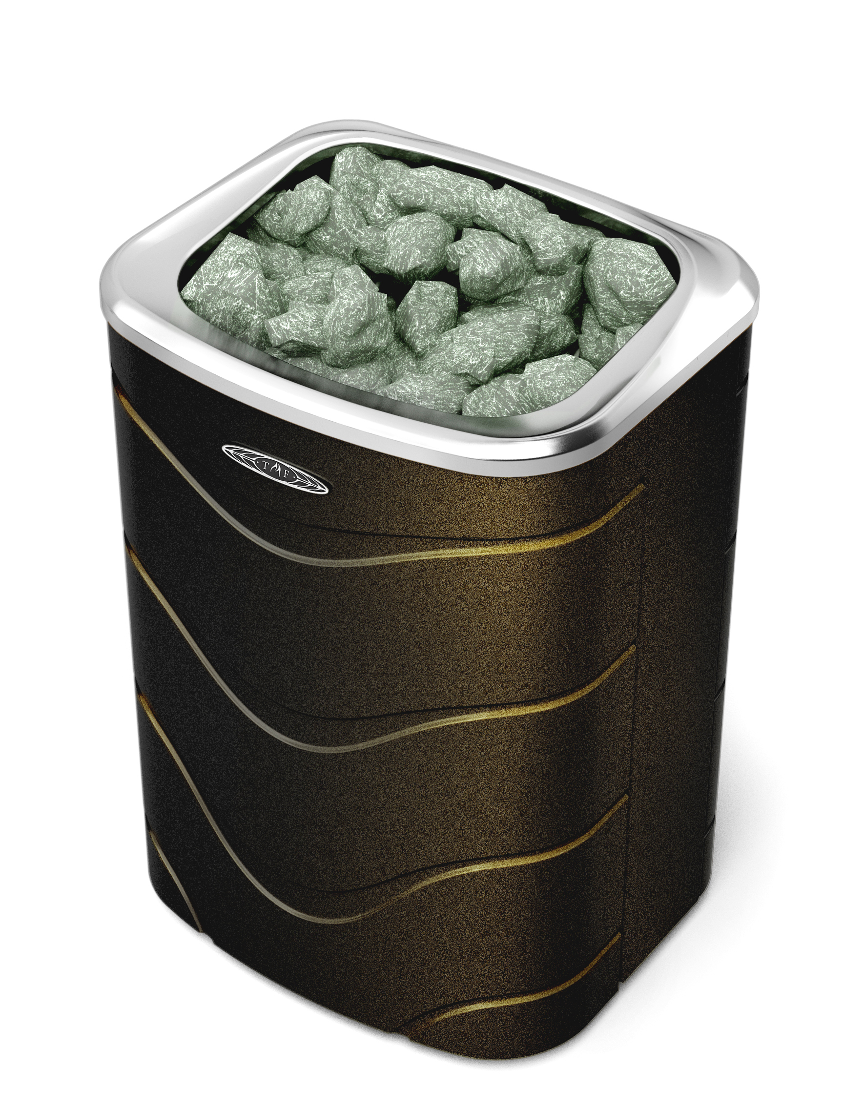Это первая электрокаменка марки TMF - красивая, стильная, компактная и мощная каменка с большим пространством для камней (до 50 кг). Она быстро прогревает парильное помещение и долго держит тепло.