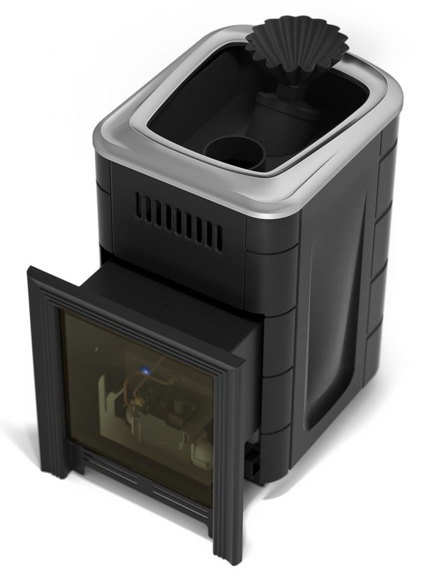 Печь-каменка банная Таймыр Мини 2017 Carbon с большим светопрозрачным экраном, с закрытой каменкой, антрацит