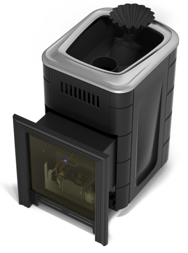 Печь-каменка банная Таймыр Мини 2017 Inox с большим светопрозрачным экраном, с закрытой каменкой, антрацит