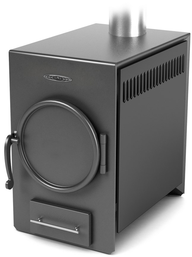 Сменный чугунный колосник обеспечивает равномерное горение. Печь отличается оригинальным дизайном, поскольку она изготовлена без единого видимого сварного шва.